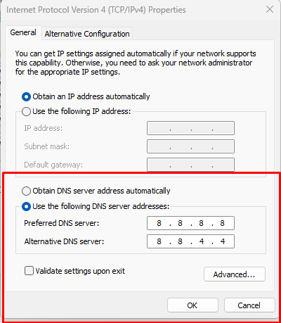Alternate DNS Server: